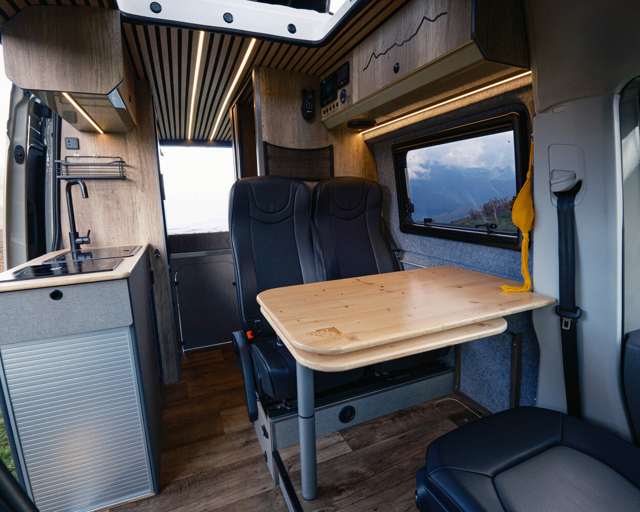 Nos aménagements de fourgons et vans sont conçus avec des matériaux de qualité, solides et durables pour vous accompagner dans toutes vos prochaines aventures (oui, même les plus folles !).
